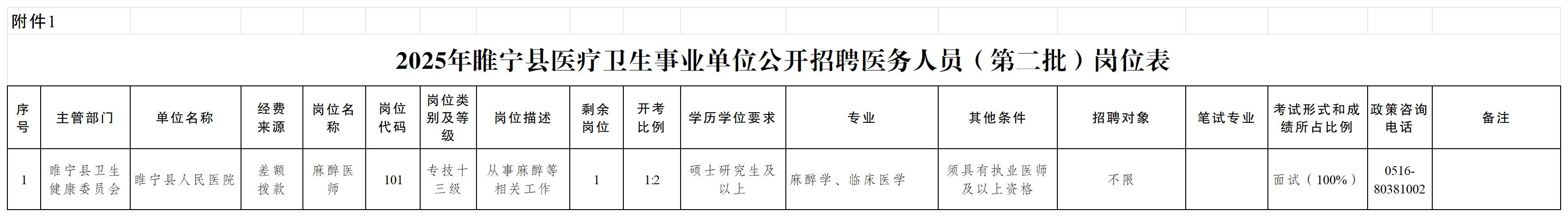1. 2025年睢宁县医疗卫生事业单位公开招聘医务人员(第二批)岗位表